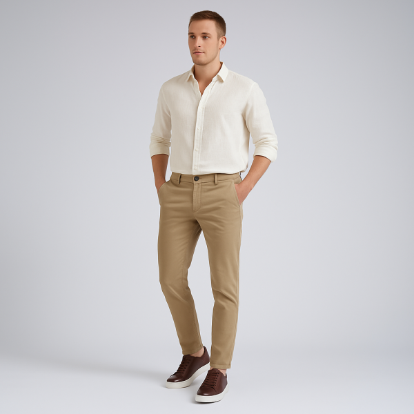 It pairs effortlessly with T-shirts, polos, button-downs, or even a lightweight blazer, and matches seamlessly with denim, chinos, or tailored trousers, creating balanced, sophisticated compositions.