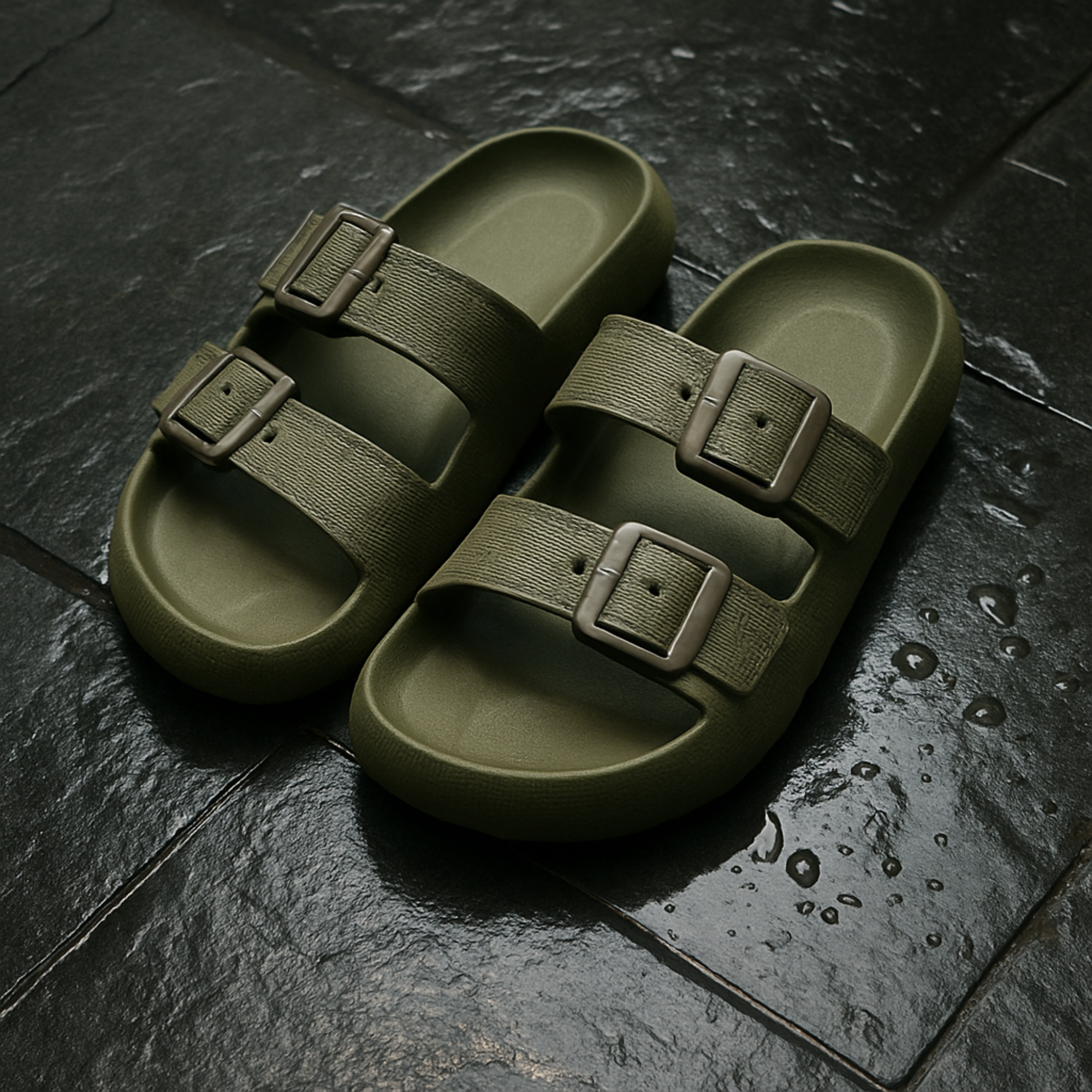 Step into effortless comfort and confidence with the Eleva Birken-Style Elevator Sandals. Designed for men who value relaxed style with an edge, this sandal features a bold double-strap design, sturdy buckles, and a thick sole that discreetly adds +1.57” (4 cm) of height.